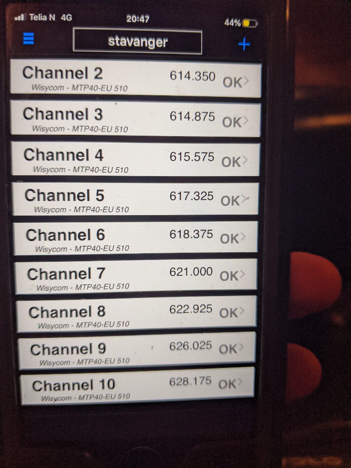 The next thing to consider was whether to have recording radio mic packs (either Audio Ltd A10’s or the Zaxcom TRX range). Having a sound recordist with each team and expecting to be in wide open spaces, I took the opinion that this wasn’t necessary and would add undue cost to the production. Instead we used 8 Wisycom transmitters for the two presenters and two teams of three. Before departing for Norway I looked into frequency regulations there and duly moved the 8 frequencies and 2 spare channels out of Ch38 ( this is not allowable spectrum/free space in Norway but legal to use in the UK with a license from Ofcom) to Ch39 & 40.